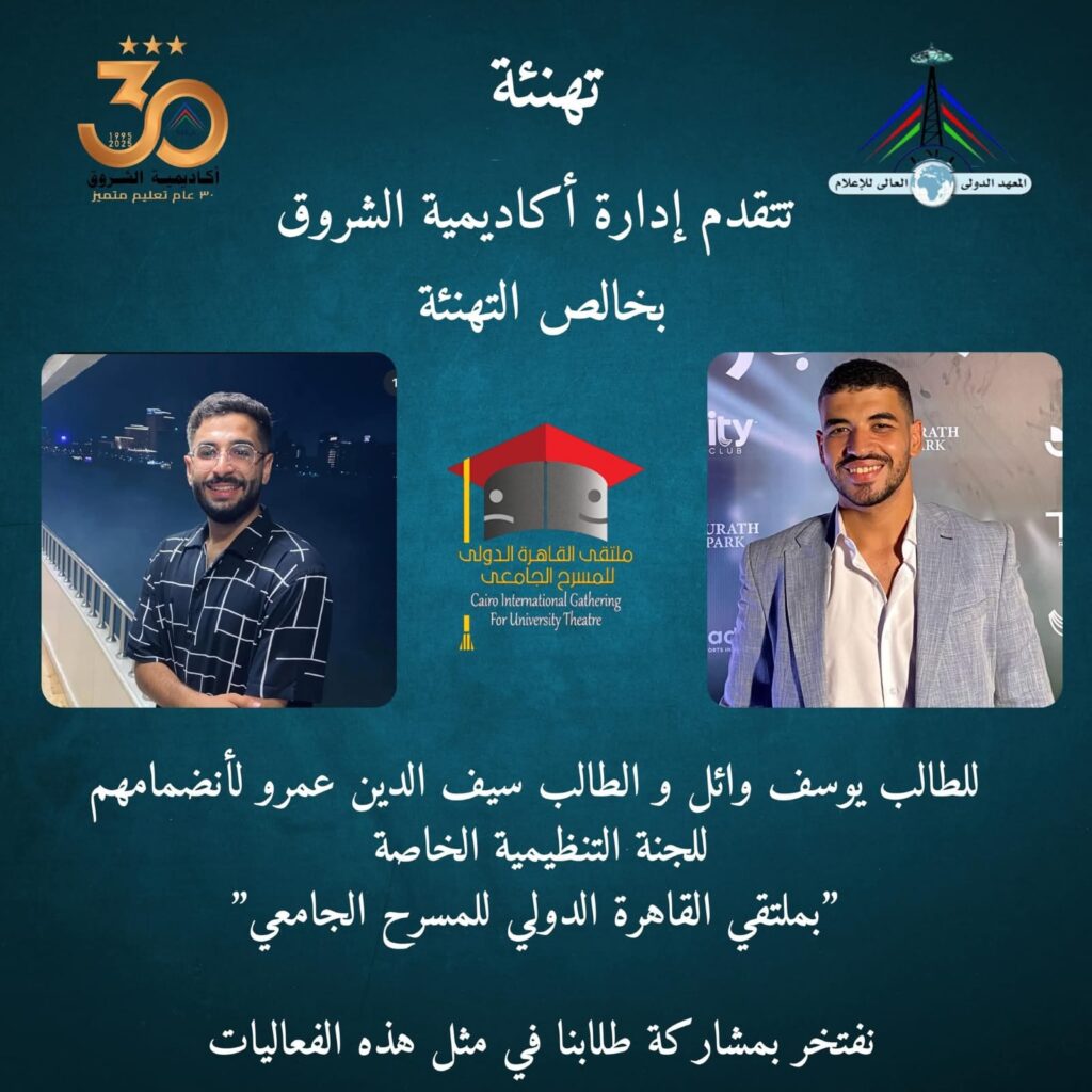 طالبان من إعلام الشروق ينضمان للجنة التنظيمية لملتقى القاهرة الدولي
