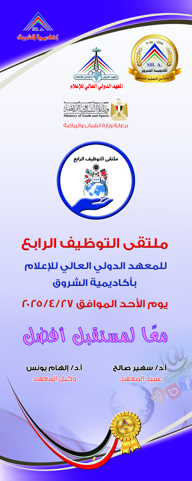 #أخبار “انطلاقة نحو المستقبل”.. ملتقى التوظيف الرابع بمعهد الإعلام بالشروق يفتح أبواب الفرص أمام الخريجين كتب – محمد منصور : نظّم المعهد الدولي العالي للإعلام بأكاديمية الشروق، اليوم، ملتقى التوظيف الرابع، بمشاركة نخبة من المؤسسات mohamed mansour / 8 أشهر Comment (0) (608)