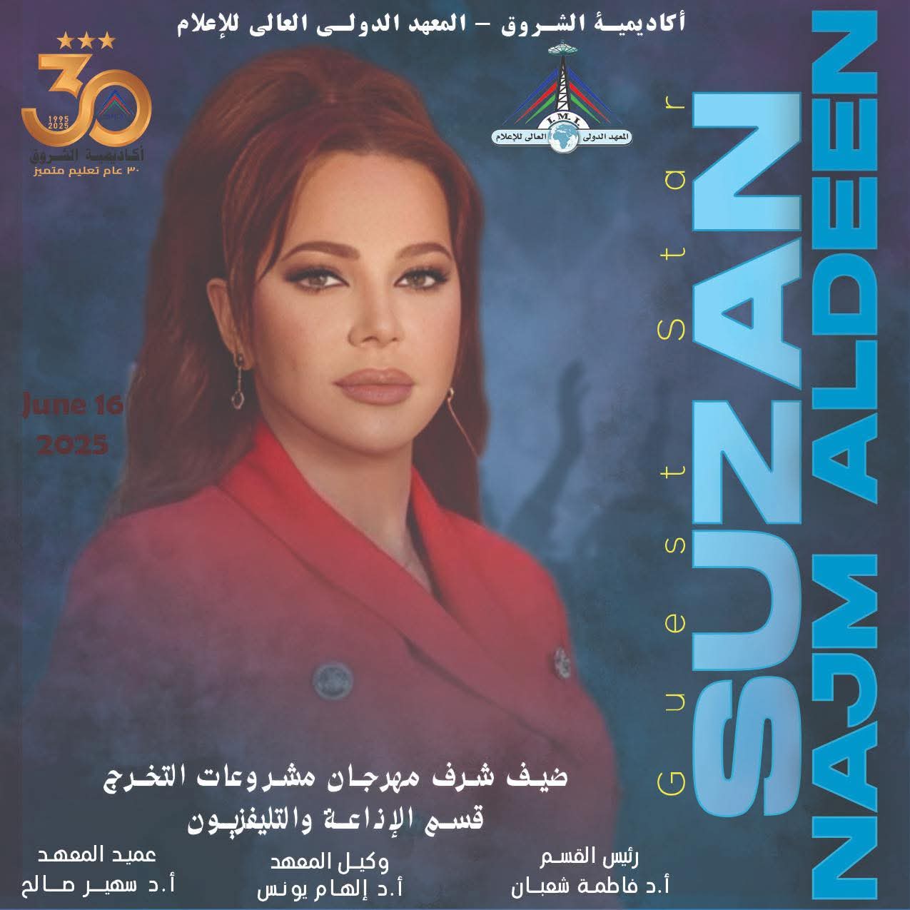 #أخبار سوزان نجم الدين ضيفة شرف بمناقشات مشروعات تخرج طلاب إعلام الشروق كتب- محمد منصور : حلّت النجمة المتألقة سوزان نجم الدين ضيفة شرف في فعاليات مناقشة مشروعات تخرج طلاب الفرقة الرابعة mohamed mansour / 6 أشهر Comment (0) (401)
