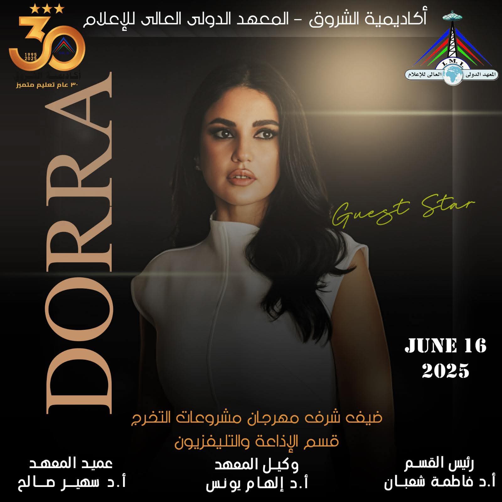 #أخبار الفنانة دُرّة ضيفة شرف في مناقشة مشروعات تخرج طلاب إعلام الشروق كتب – محمد منصور : حَلّت النجمة المتألقة دُرّة ضيفة شرف على فعاليات مناقشة مشروعات تخرج طلاب الفرقة الرابعة بقسم mohamed mansour / 6 أشهر Comment (0) (308)