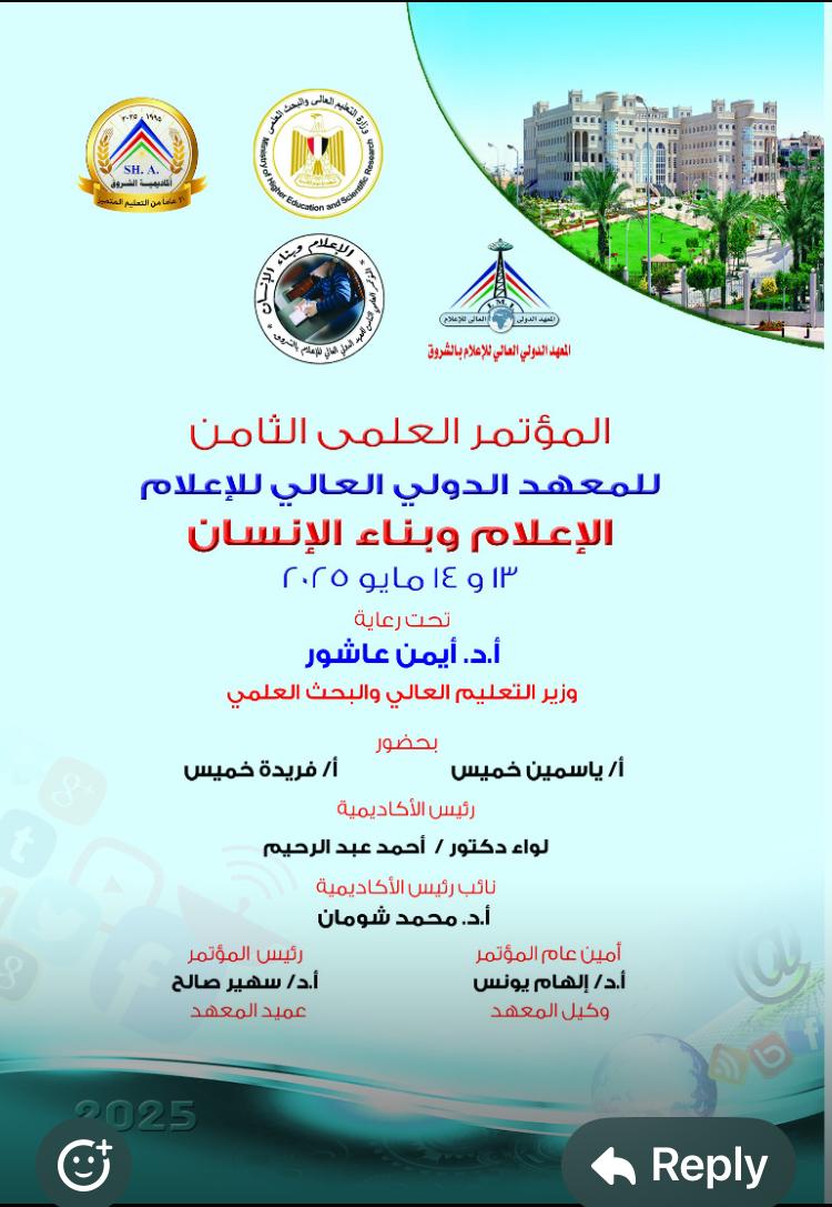 برعاية وزارة التعليم العالى.. ينطلق فاعليات المؤتمر العلمي الثامن للمعهد الدولي العالي للإعلام.. تحت عنوان “الإعلام وبناء الإنسان”