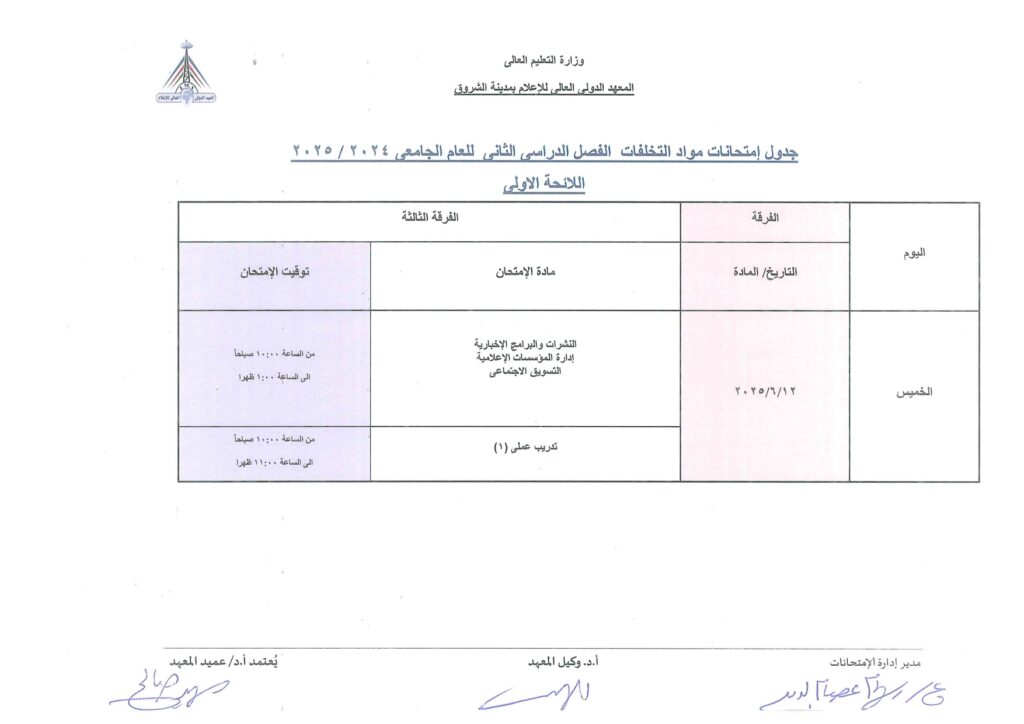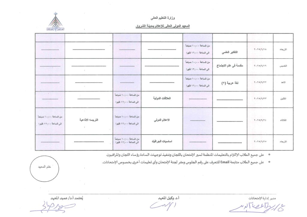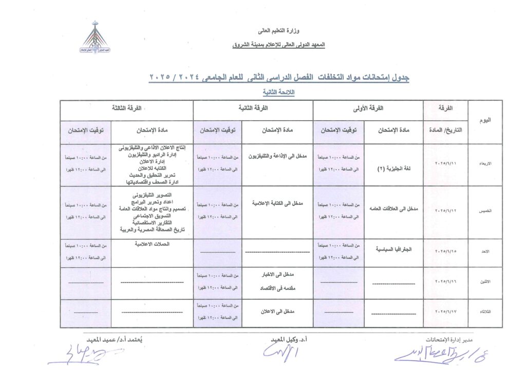 بالصور ..جدول امتحانات التخلفات للفصل الدراسي الثاني 2024-2025