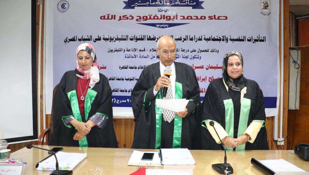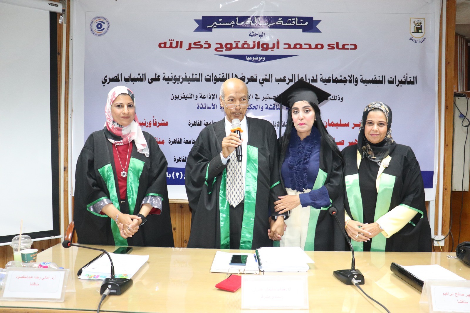 مناقشة رسالة ماجستير بكلية الإعلام جامعة القاهرة.. وتقدير ممتاز للباحثة دعاء محمد أبو الفتوح