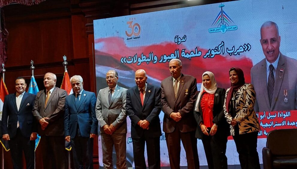 استضاف المعهد الدولي العالي للإعلام بأكاديمية الشروق، اللواء نبيل أبو النجا، مؤسس الوحدة الاستراتيجية 999 قتال صاعقة، وحامل وسام النجمة العسكرية، الأربعاء 15 أكتوبر، في ندوة حملت عنوان “حرب أكتوبر ملحمة العبور والبطولات”، وقدم الندوة الإعلامي د. أيمن العدلي، بمسرح المعهد.