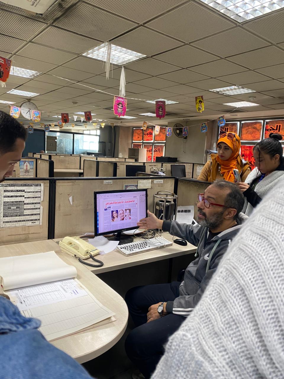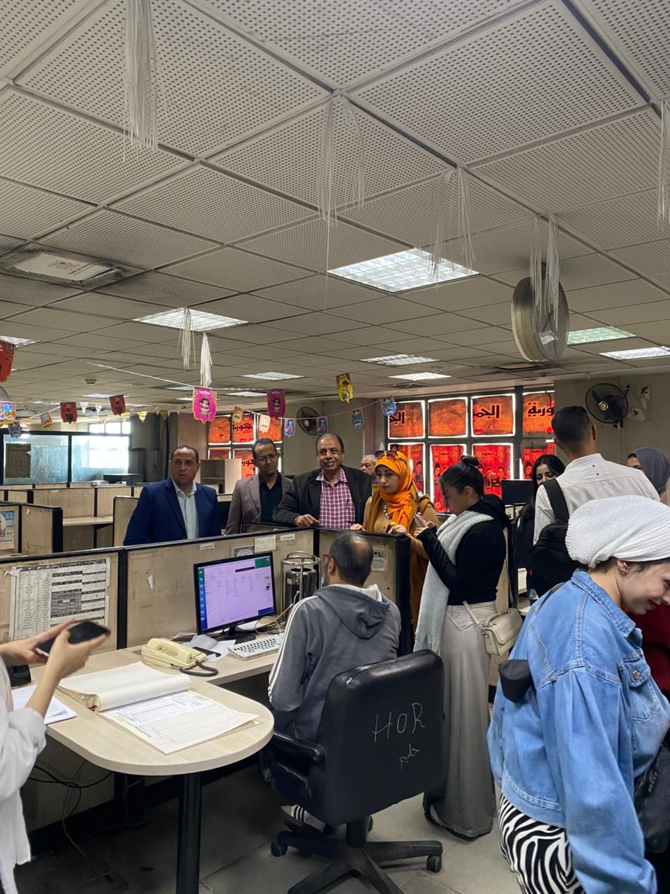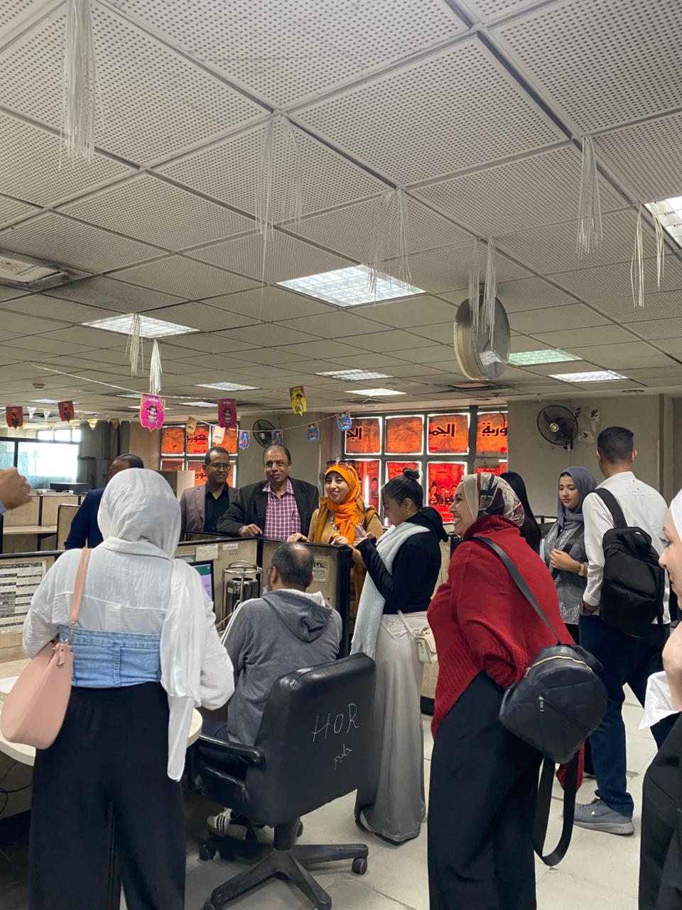 كما التقى الطلاب بالكاتب الصحفى علاء معتمد مدير عام التحرير بالديسك المركزي، والكاتب الصحفي سيد أبو اليزيد، والكاتب الصحفي فتحي أبو الحمد، إضافة إلى الأستاذ محمود عيسى نائب مدير العلاقات العامة، والأستاذ محمود فوزي مدير العلاقات العامة، الذين قدموا شرحًا وافيًا حول آليات العمل داخل المؤسسة، والتحديات التي تواجه غرف الأخبار، وكيفية إدارة المحتوى وفق معايير مهنية.