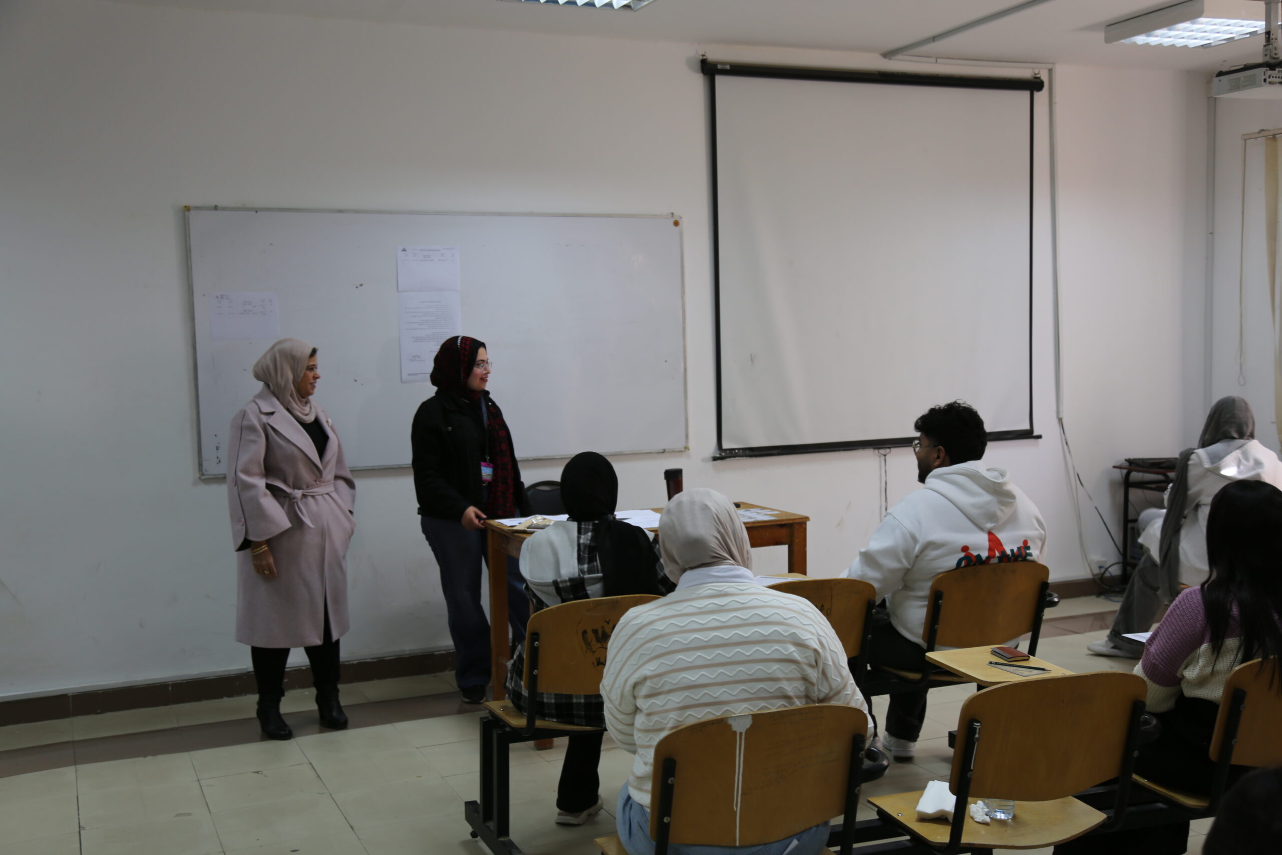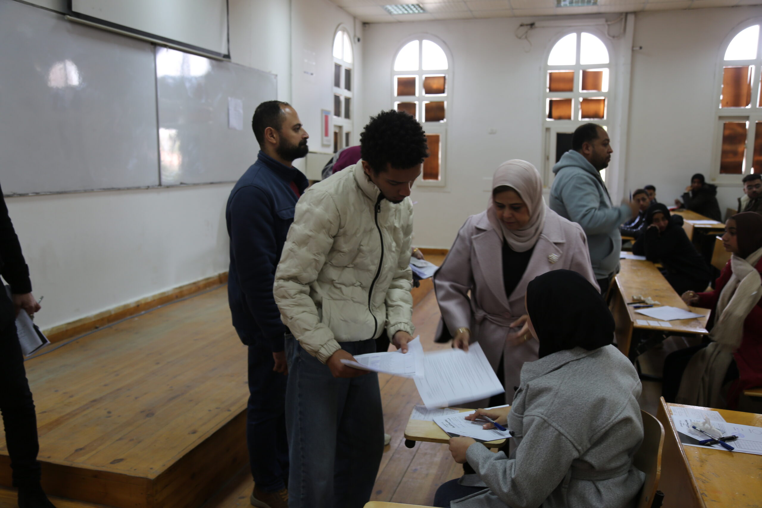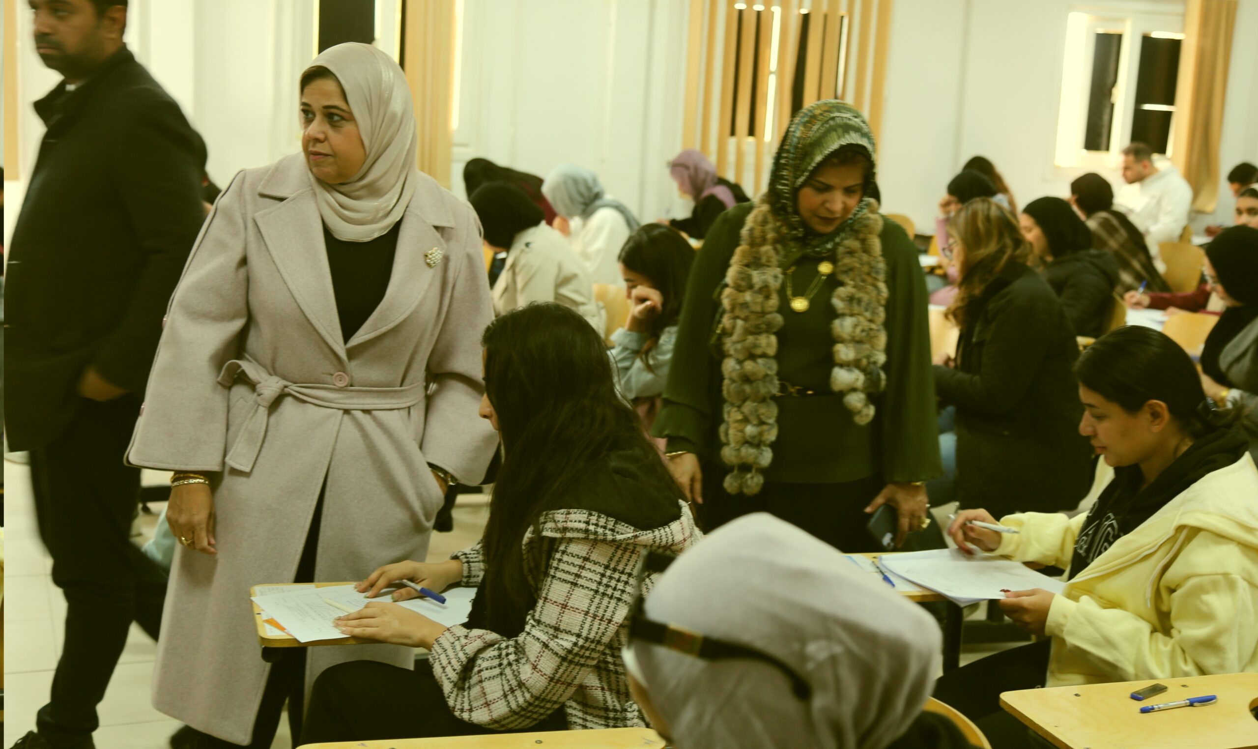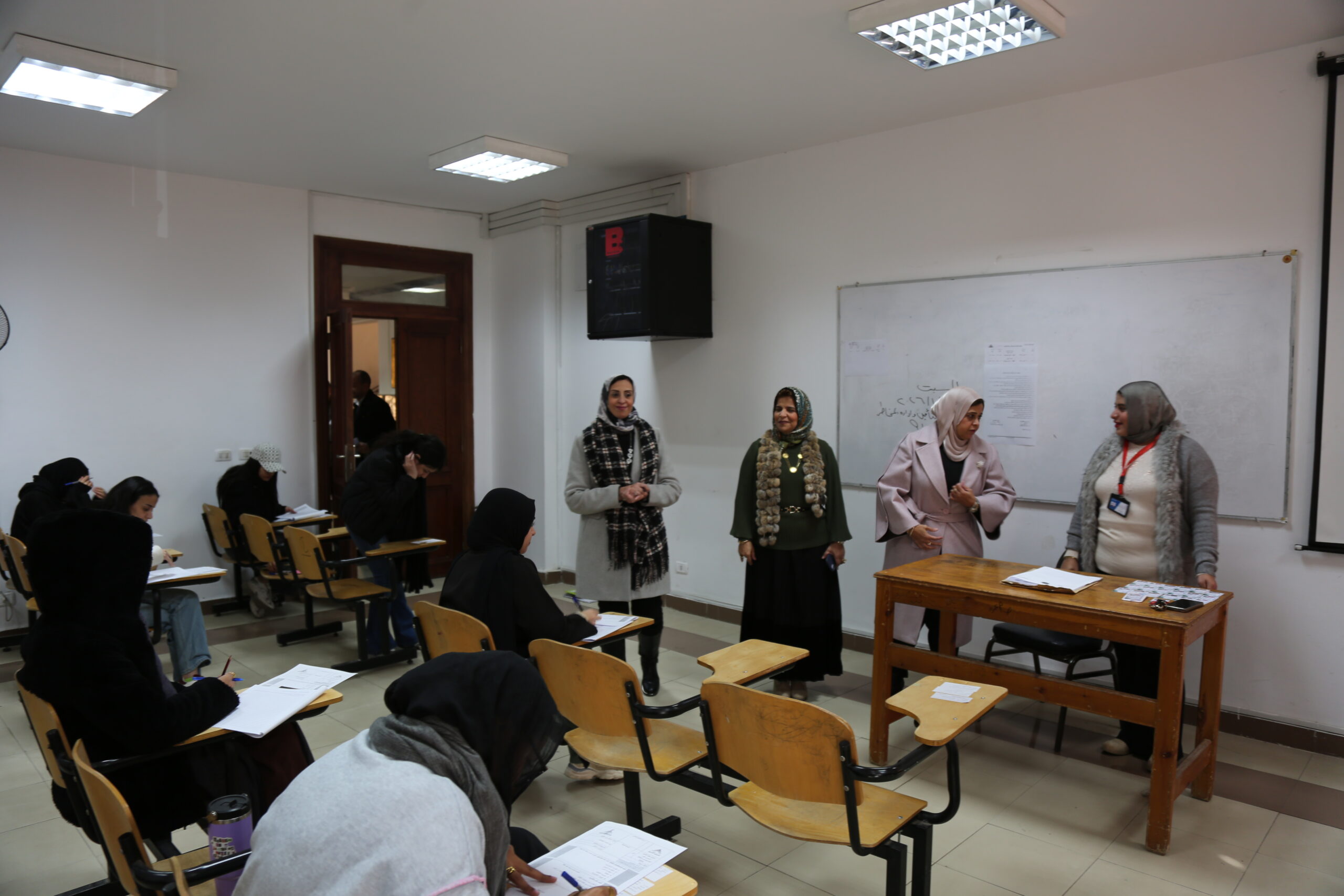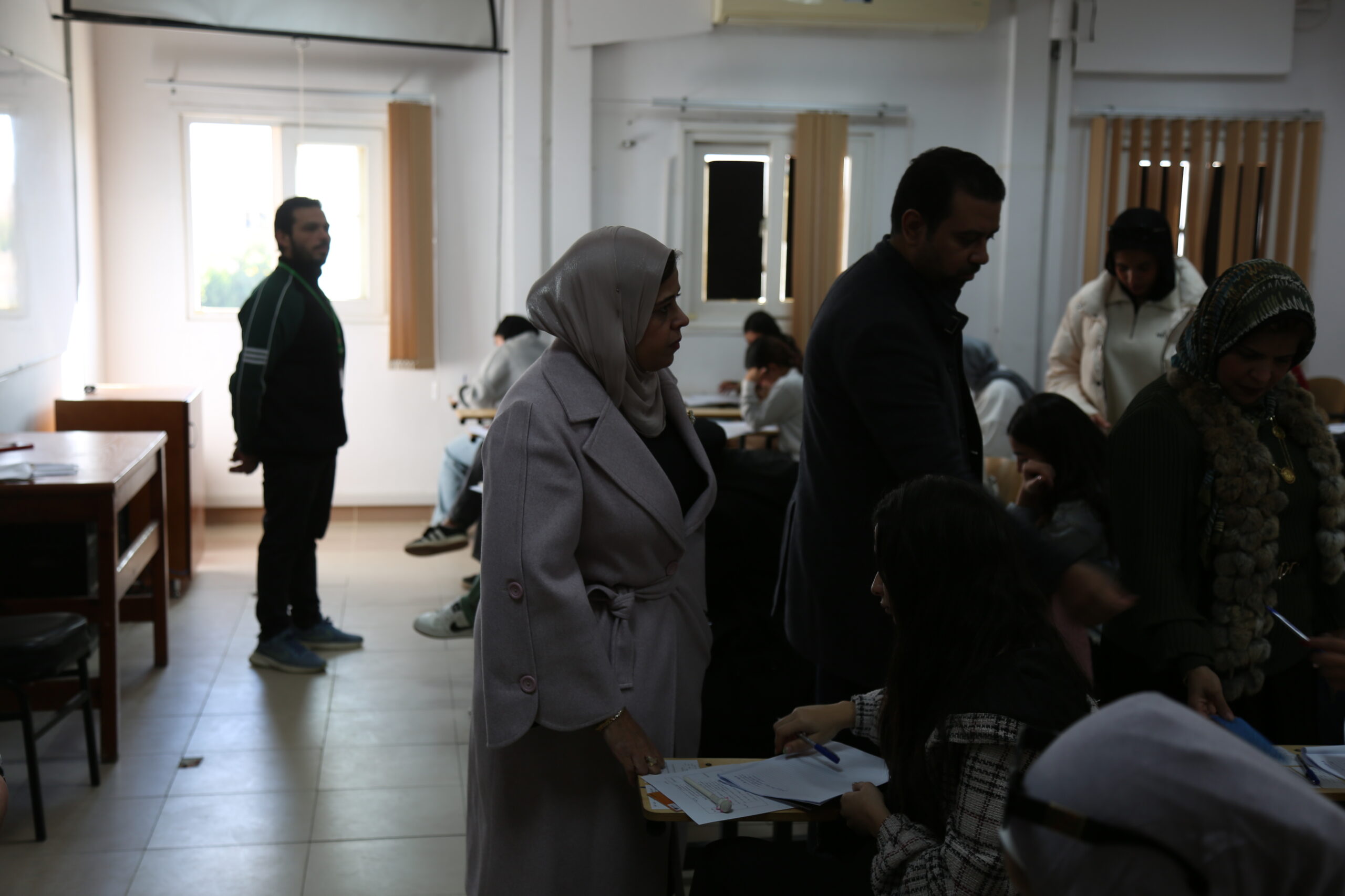 وتفقدت عميدة المعهد ووكيلة المعهد مراكز توزيع الأسئلة، واطمأنتا على حضور جميع المراقبين ورؤساء اللجان، والتأكد من عدم وجود أي نقص أو خلل في الترتيبات التنظيمية، كما قامتا بالمرور على عدد من اللجان للاطمئنان على الطلاب أثناء أداء الامتحانات.
