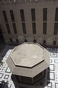 - صحن أوسط مكشوف مستطيل الشكل ومركز النشاط الروحي ومكانًا للتجمع والذكر عنصرًا مهمًا للإنارة والتهوية.