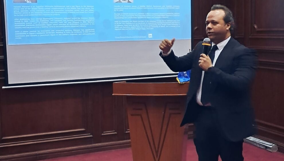 جاء ذلك خلال مشاركته في فعاليات اليوم العلمي لقسم الهندسة الطبية، حيث استعرض تجربته المهنية منذ تخرجه عام 2008، مشيرًا إلى أنه بدأ مسيرته في كبرى شركات الأجهزة الطبية، وتدرج وظيفيًا على مدار سبع سنوات من العمل في الصيانة إلى مناصب قيادية، قبل أن ينضم إلى شركة Medizone Egypt، التي تشهد توسعًا واستثمارات قوية في القطاع الطبي.