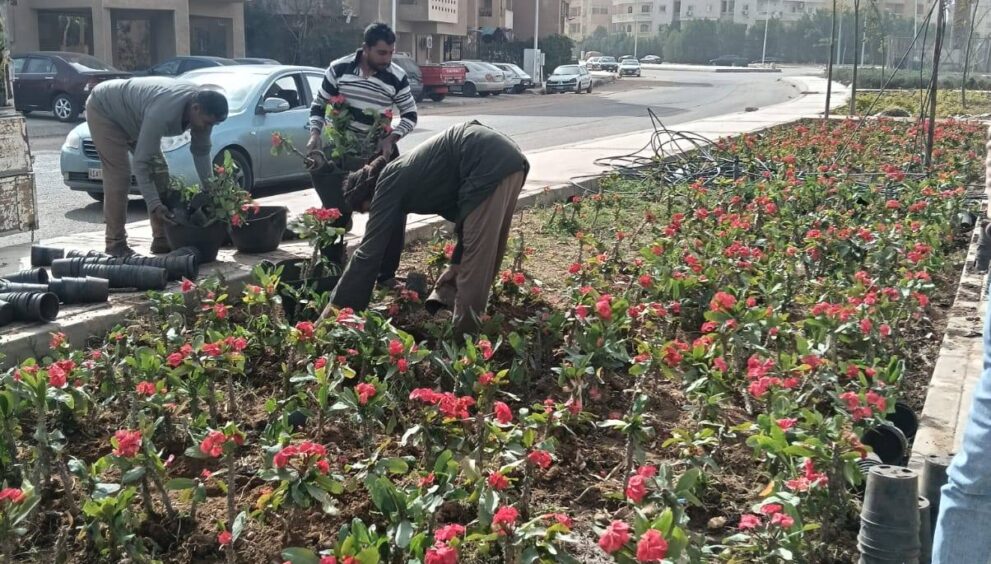 استمرار أعمال تطوير الزراعة والمسـطحات الخضراء بمدينة الشروق