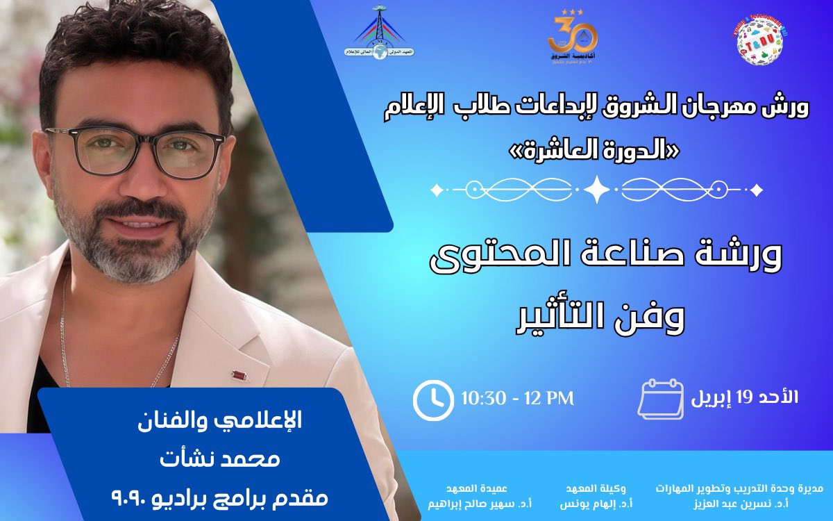 وتأتي هذه الورشة ضمن سلسلة الورش التدريبية التي ينظمها مهرجان الشروق العاشر، بهدف صقل مهارات طلاب الإعلام، وربط الدراسة الأكاديمية بالتطبيق العملي، وإعداد جيل جديد قادر على مواكبة متطلبات الإعلام الحديث والمنصات الرقمية.