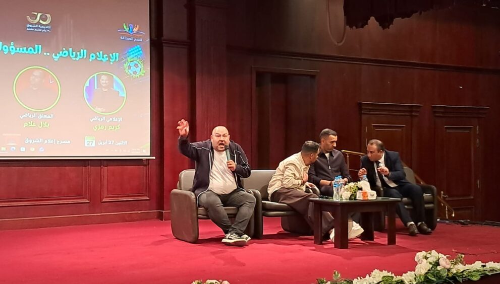 جاء ذلك خلال ندوة نظمها المعهد الدولي العالي للإعلام بأكاديمية الشروق، بحضور عدد من الإعلاميين والمتخصصين، حيث تحدث عن واقع الإعلام الرياضي ومسؤولية الإعلاميين الشباب في المرحلة المقبلة.
