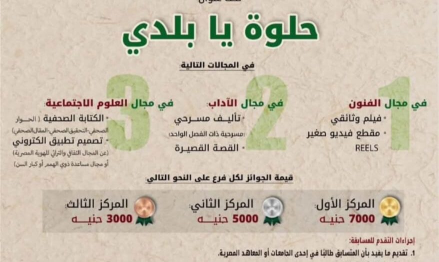 “حلوة يا بلدي”.. المجلس الأعلى للثقافة يطلق مسابقات صيفية لشباب الجامعات بجوائز تصل إلى 7 آلاف جنيه