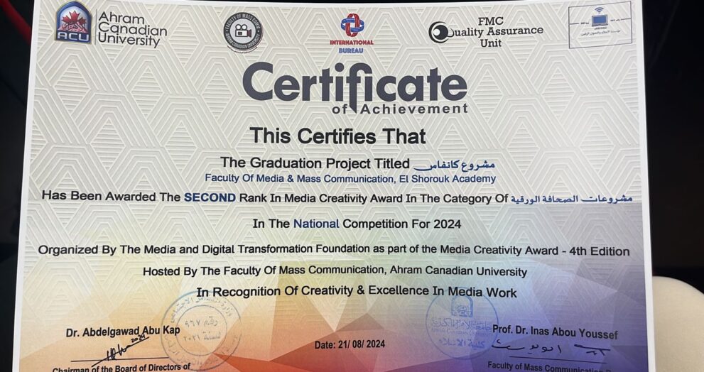 طلاب مشروعات إعلام الشروق يحصدون 4 جوائز في مسابقة مؤسسة الإعلام والتحول الرقمي